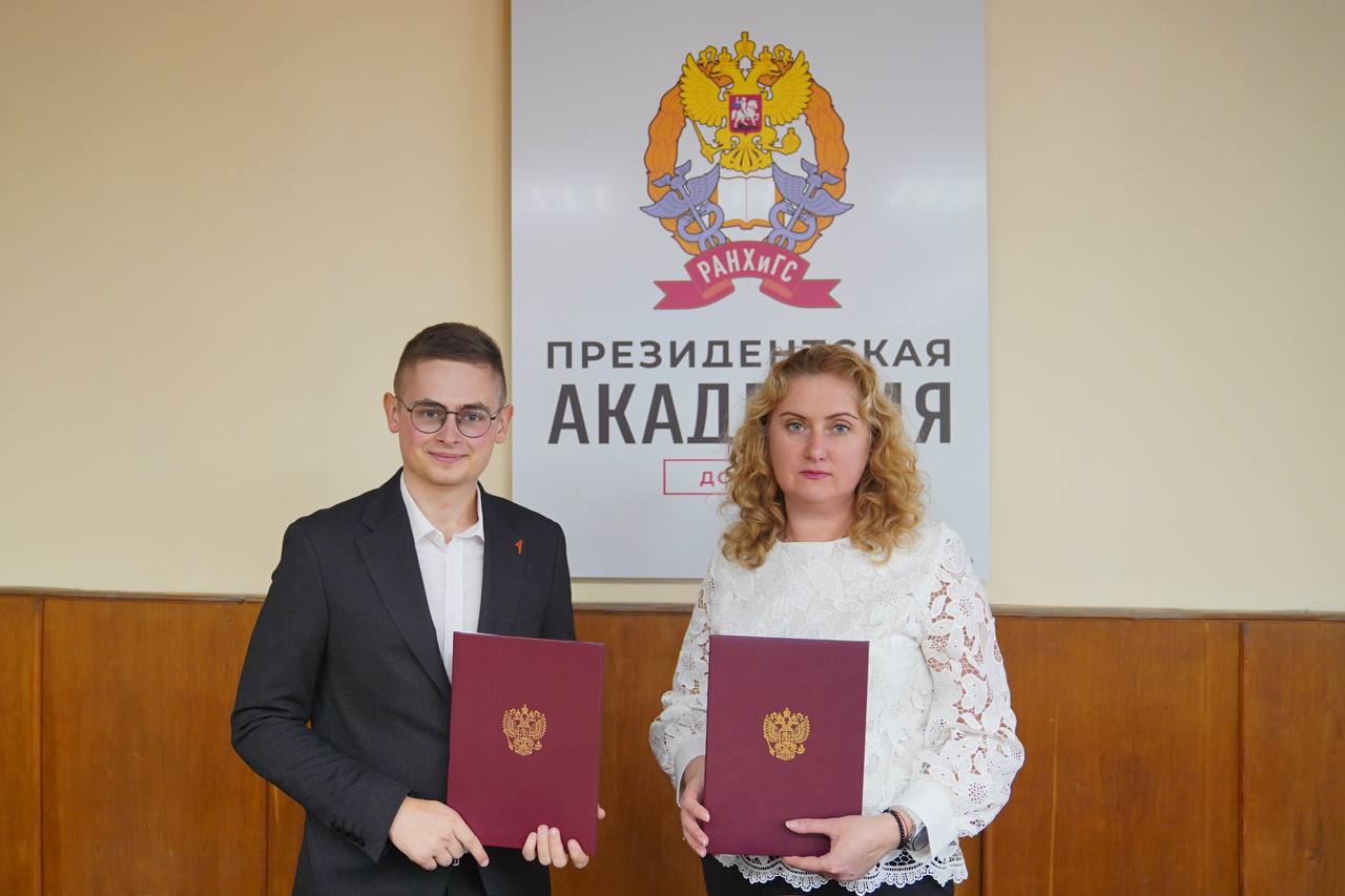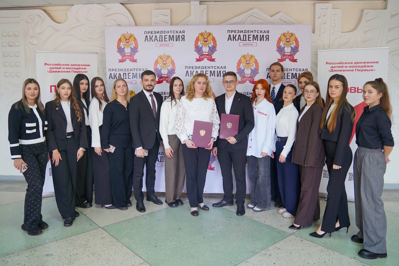 22 октября 2025 года состоялось подписание Соглашения о сотрудничестве между Донецким филиалом Президентской академии в лице директора Ларисы Костровец и Региональным отделением Общероссийского общественно-государственного движения детей и молодёжи «Движение Первых» в Донецкой Народной Республике в лице Председателя Совета Дениса Чернобая.