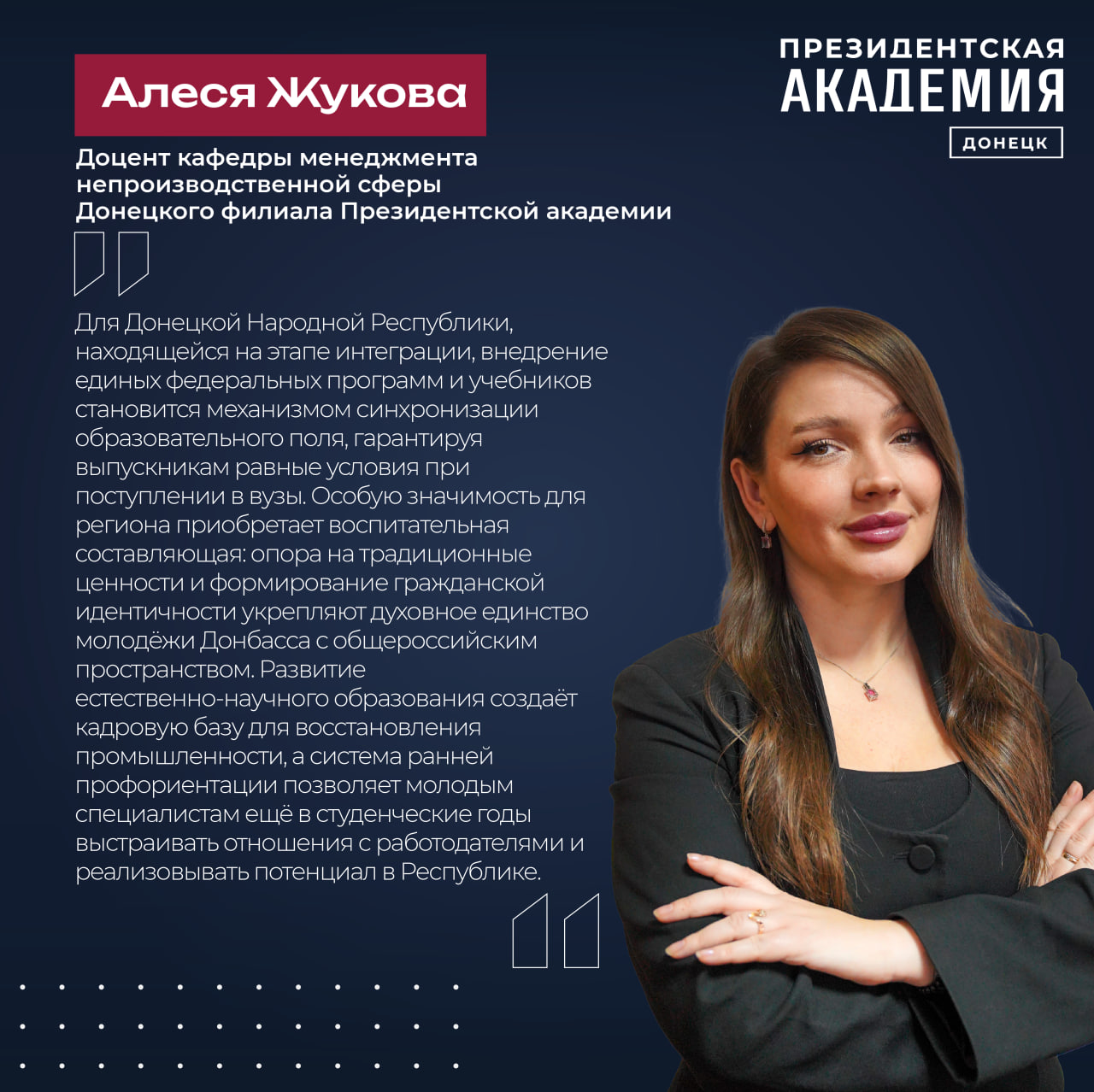 11 марта 2026 года в торжественной обстановке прошла церемония вручения дипломов магистров выпускникам Донецкого филиала Президентской академии.
