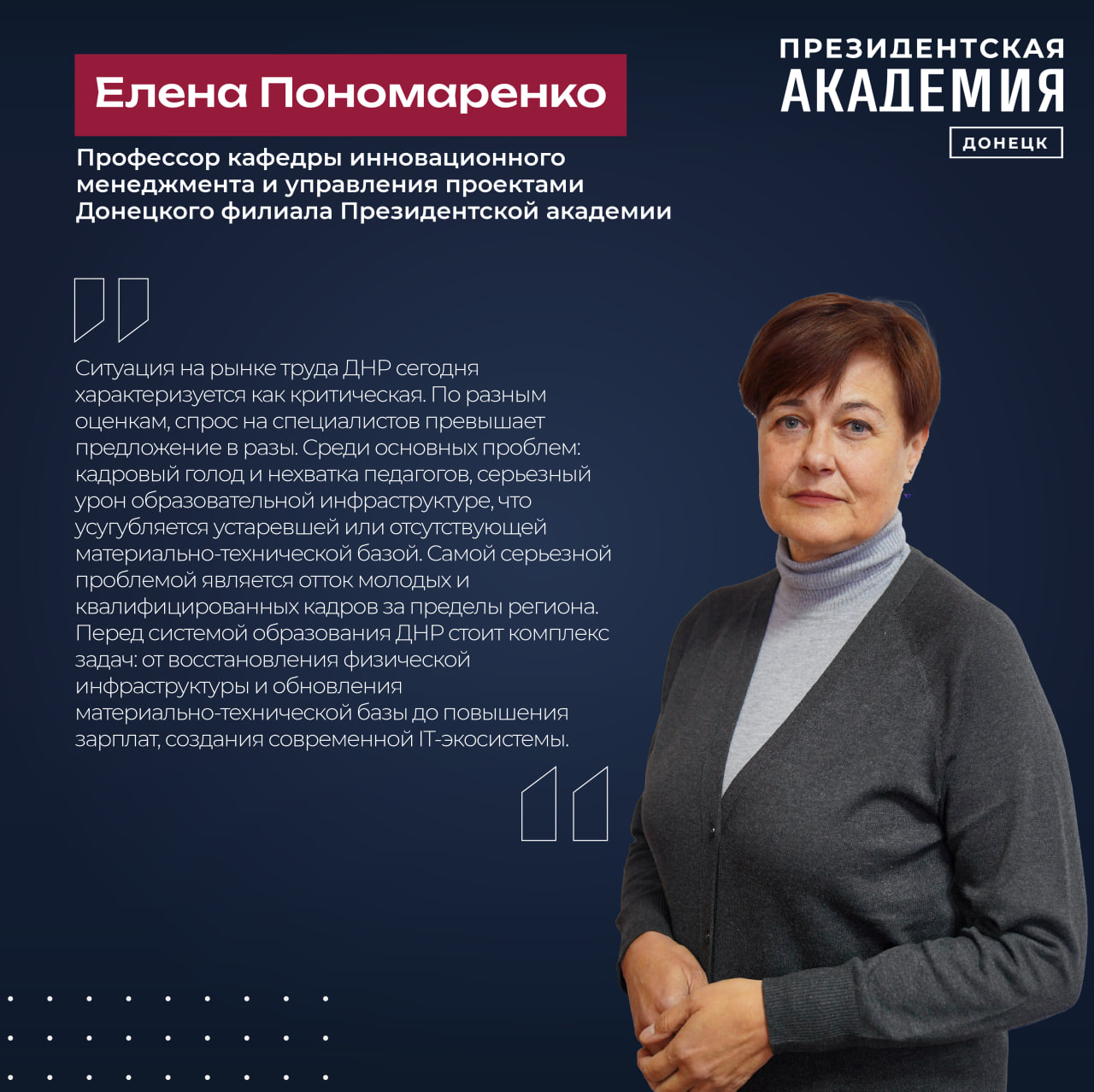 На базе Донецкого филиала Президентской академии стартовал образовательно-прикладной проект «Клиентоцентричный путь гражданина: улучшение качества взаимодействия при регистрации прав на недвижимое имущество в Донецкой Народной Республике». Проект реализуется совместно с Институтом государственной службы и управления Президентской Академии, Минэкономразвития ДНР и ГБУ «МФЦ ДНР».