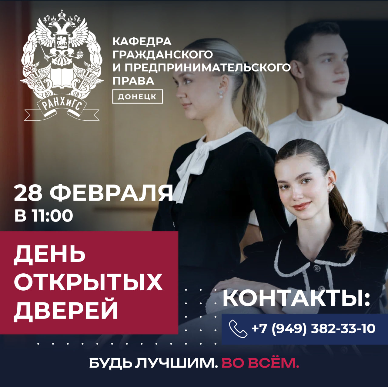 Приглашаем абитуриентов, студентов и всех, кто интересуется юриспруденцией, на встречу с преподавателями, студентами и выпускниками кафедры гражданского и предпринимательского права! Мы воспитываем не просто специалистов, а критически мыслящих профессионалов, готовых к вызовам времени и способных находить новаторские решения.